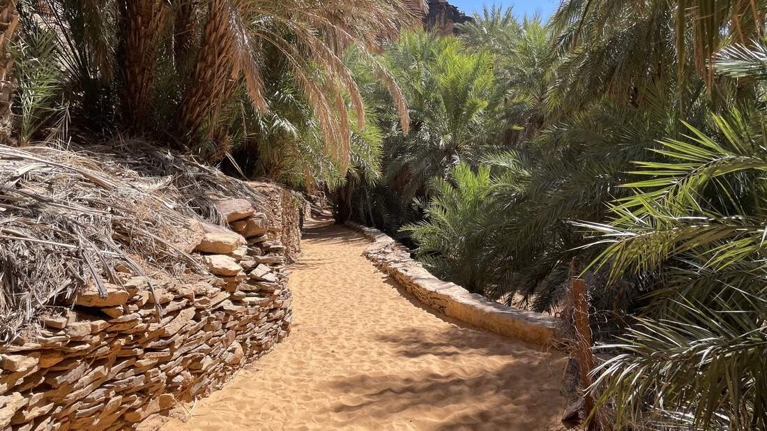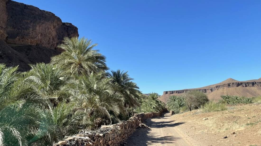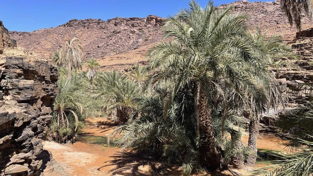 Nach ein paar Tagen der Entspannung machen wir uns wieder auf den Weg. Unser nächstes Ziel ist die "Tergit Oase", die sich in einer Schlucht westlich des "Adrar-Plateaus" befindet. Die Dattelpalmenoase, wie auch der kleine Ort davor, ist wunderschön von mehreren Tafelbergen umgeben. Wir erkunden die Oase, während wir dem kleinen Flusslauf immer weiter nach oben folgen.