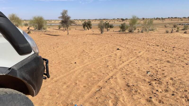 Langsam aber sicher nähern wir uns dem "Senegal Fluss", der teilweise die Grenze zum Senegal bildet. Die Luft ist längst nicht mehr so trocken, wie sie es in den nördlichen Regionen des Landes noch war. Die Landschaft wird immer grüner und immer mehr grüne Felder sind zu sehen. Auch viele Rinder- und Ziegenherden grasen an den Tümpeln der Seitenarme des Flusses.