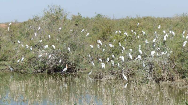 Unsere letzte Nacht in Mauretanien verbringen wir völlig unspektakulär hinter einer Tankstelle. Noch vor Sonnenaufgang machen wir uns auf den Weg zur Grenze. Wir wollen aber nicht den Grenzübergang mit der Fähre bei Rosso nehmen, da es hier für Touristen wohl immer zu langen Wartezeiten kommen soll. Wir ziehen den Grenzübertritt bei Diama vor. Dafür müssen wir jedoch über einen ca. 40km langen Damm fahren, der größtenteils aber auch durch den "Diawling NP" führt. Die Route über den Damm entpuppt sich recht schnell als eine äußerst ruppige Sand- und Wellblechpiste – hat natürlich auch wieder was von "Offroad Feeling". Jetzt, in der Trockenzeit, ist der Damm einigermaßen gut zu befahren. Wäre aber während der Regenzeit nicht unbedingt unser Favorit.
