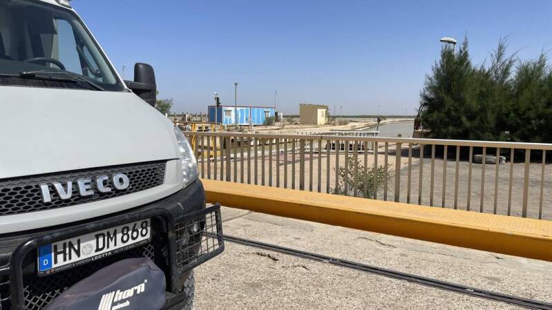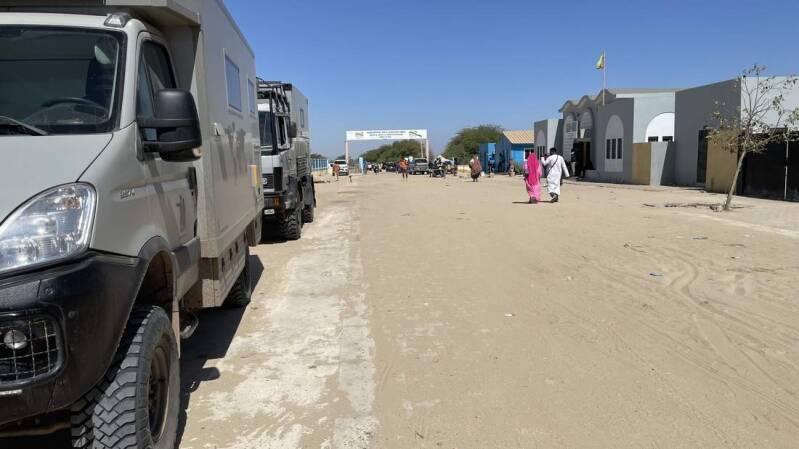 Am Ende des Damms stehen wir vor der Grenze. Die Ausreise aus Mauretanien geht nach afrikanischem Maßstäben doch recht zügig vonstatten. Nachdem wir den Schlagbaum auf mauretanischer Seite passiert haben, geht es über eine kleine Schleusenanlage zum nächsten Schlagbaum – jetzt heißt es Ruhe und Geduld bewahren, denn die Einreise in den Senegal steht uns bevor.