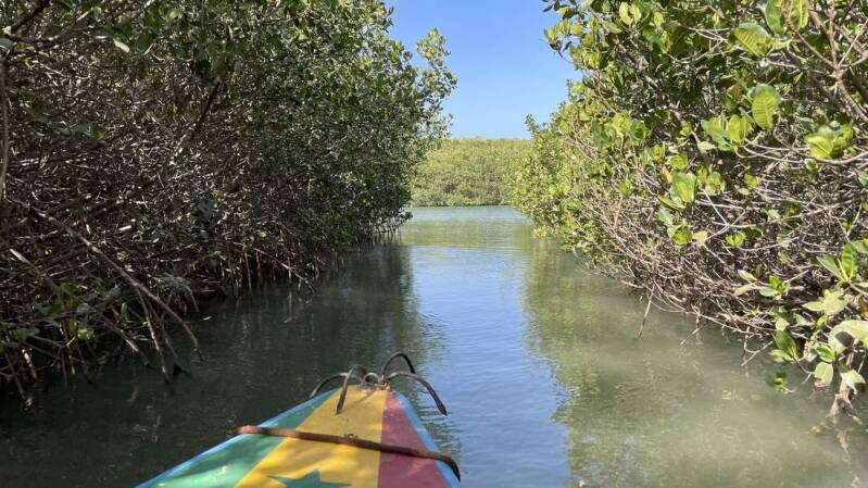 Einen weiteren Stopp legen wir in Somone ein. Der Ort ist bei Pauschal- wie auch bei Individualreisenden, dank der Nähe zum Flughafen Dakar, ein sehr beliebtes Ziel. Die ewig langen Sandstrände laden fast das ganze Jahr über zum Sonnenbaden ein und der permanent vorhandene Wind zieht die Kitesurfer hierher. Ebenso grenzt ein großes Mangrovengebiet direkt an den Ort. Von hier aus starten wir mit einem kleinen Boot eine sehr interessante Mangroventour. Neben den überall anzutreffenden Kormoranen und Weißpelikanen, bekommen wir diesmal auch braune Milane und mehrere Fischadler zu sehen. Die Ernten aus den vielen Austernbänken in diesem Schutzgebiet, werden z.T. auch in den örtlichen Lokalen serviert.
