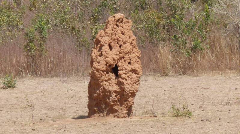 Wir folgen zunächst der nördlich des „Gambia Flusses“ verlaufenden „North Bank Road“, in Richtung Osten. Die Nähe zum Fluss lässt die Vegetation trotz Trockenzeit in einem üppigen Grün erscheinen. Dazwischen sehen wir immer wieder riesige Termitenhügel. Auch die traditionell, afrikanische Bauweise der Häuser ist jetzt immer mehr zu sehen.
