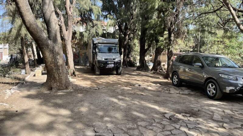 Völlig unerwartet finden wir sogar einen akzeptablen und relativ ruhigen Stellplatz für die anstehende Nacht. Er befindet sich auf dem Gelände des „Segelclubs“ von Dakar. Gut, über die Müllberge am Strand und der Umgebung, muss man einfach hinwegsehen.
