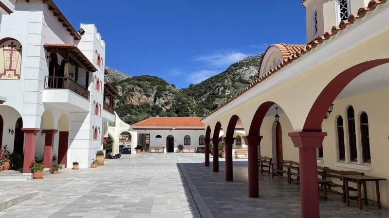Für uns geht es jetzt weiter in Richtung Westen. Dabei legen wir dieses Mal in Spili einen längeren Stopp ein und schauen uns das schöne Kloster an. Es ist zugleich der Hauptsitz des Bischofs. Während eines Rundgangs durch die Klosteranlage empfinden wir eine sehr angenehme Atmosphäre, da alles sehr gepflegt ist und wir zudem die einzigen Besucher sind.