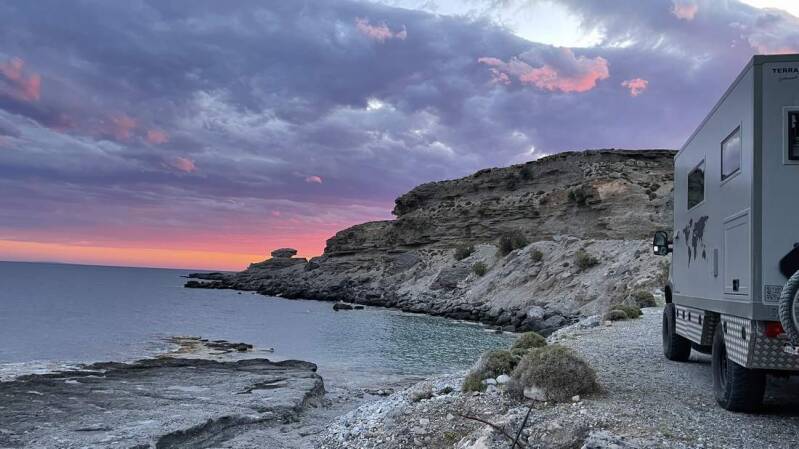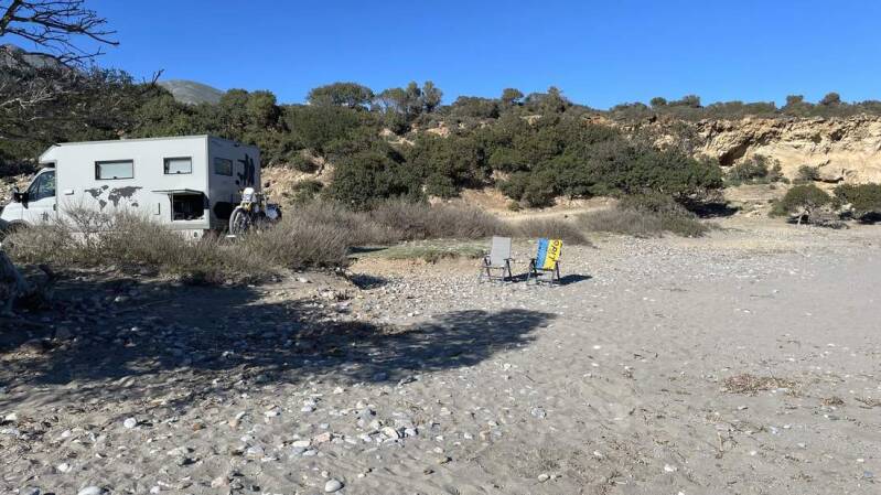 Ab Plakias folgen wir der „Coastal Road“ die teilweise auf sehr schmalen und unasphaltierten Sträßchen verläuft. Doch wir genießen auch die herrlichen Ausblicke, die sich uns dabei bieten. An einem der einsamen Strände finden wir ein nettes Plätzchen für die anstehende Nacht, wo wir auch gleich den darauffolgenden Tag noch verbringen.
