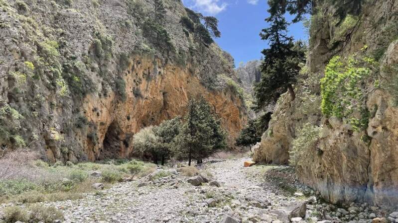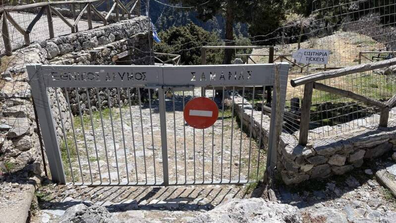 Leider stehen wir bei unserer Ankunft am oberen Eingang der Samaria Schlucht vor verschlossenen Toren. Aufgrund von einem momentan noch hohem Wasserstand sowie dem Erdbeben vom August ´23 stehen noch ausgiebige Reparaturarbeiten an – schade.