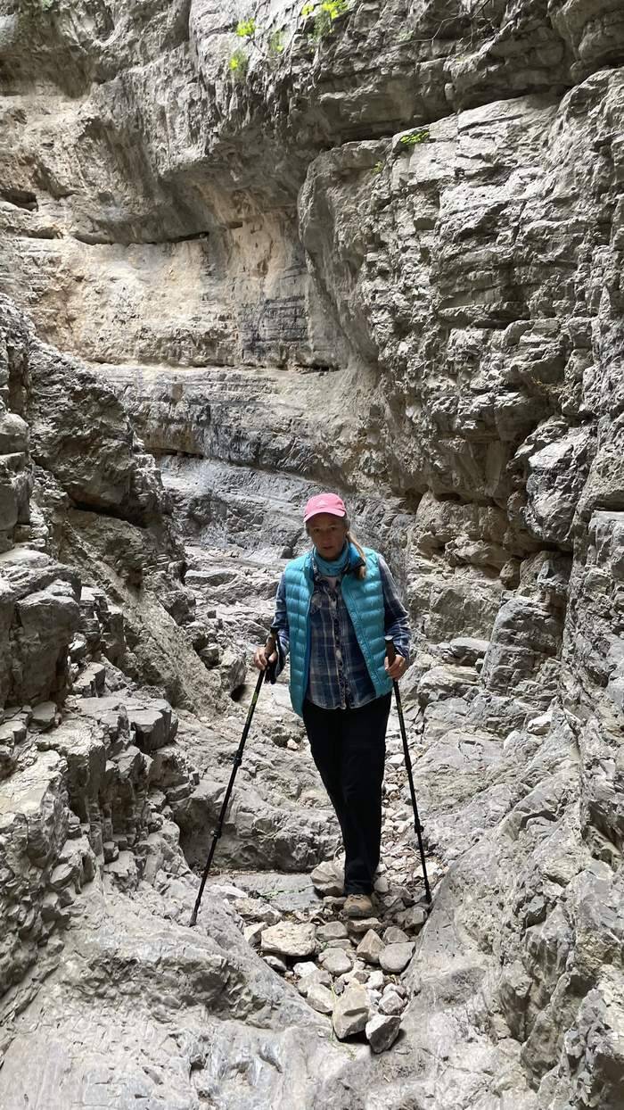Da wir den „Imbros Canyon“ nur in eine Richtung durchwandern wollen, platzieren wir das Motorrad mitsamt den Helmen am unteren Ende der Schlucht – wir sind ja keine kleinen Dummerchen. Mit dem Iveco fahren wir hoch zum Einstieg, der sich kurz vor dem kleinen Dorf Imbros befindet. Kontinuierlich führt der Weg nach unten. Er ist zwar nicht sonderlich steil, jedoch wegen des steinigen Untergrundes ist höchste Aufmerksamkeit gefordert. Zu beiden Seiten ragen die Wände weit in die Höhe und an der engsten Stelle sind es kaum noch 2m. Nach etwa 8km und 600 Höhenmetern haben wir das untere Ende der Schlucht erreicht.