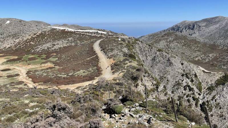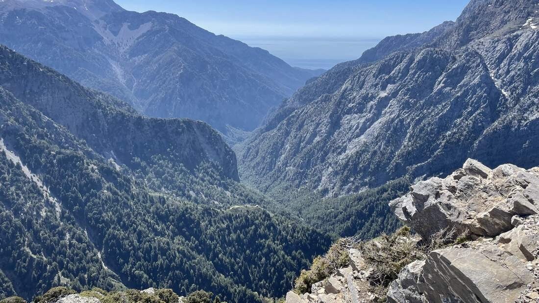 Alternativ entscheiden wir uns für eine Bergtour hoch zur Kallergi Schutzhütte. Die anfänglich eher gemütliche Wanderung, mündet nach der Entscheidung für die „Abkürzung“, in eine doch anstrengendere Kraxelei. Der einzigartige Blick von der Schutzhütte aus in die Samaria Schlucht und eine Rundumsicht, sowohl auf die Nord- wie auch auf die Südküste der Insel, belohnt uns jedoch für den mühevollen Aufstieg. Auf ein letztes Mal geht es für diesen Winter nochmals an den verbliebenen Schneeresten vorbei.
