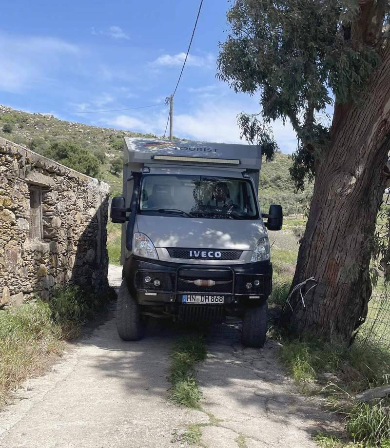 Eigentlich sollten wir es ja wissen, dass man sich nicht nur auf das Navi verlassen darf. Obwohl die Gassen im Ort immer schmaler werden, vertrauen wir weiterhin der modernen Technik. Dann ist es aber auch schon geschehen – wir haben uns festgefahren. Nur mit viel Geschick und der Unterstützung der Anwohner kommen wir wieder frei – doch alle nehmen es mit kretischer Gelassenheit.