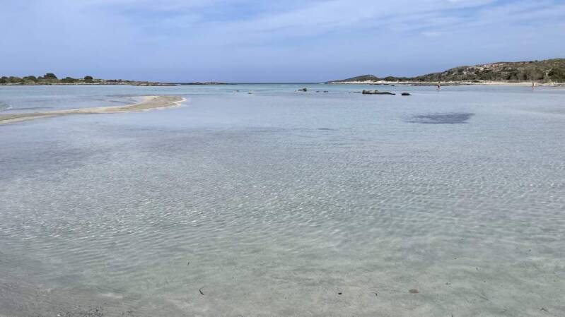 Kurz nach Sonnenaufgang erreichen wir Kretas wohl bekanntesten Strand. Noch sind wir die einzigen Besucher. Durch das knietiefe Wasser waten wir zur Insel rüber und folgen dem paradiesischen Strand bis fast vor zum Leuchtturm. An vielen Stellen des schneeweißen Strandes wird auch rosafarbener Sand angespült – irre. Als wir wieder das Festland erblicken sehen wir erst, wie viele Menschen sich auf diesen wirklich einzigartigen Flecken Erde zubewegen – und die Saison hat noch nicht Mal richtig begonnen.