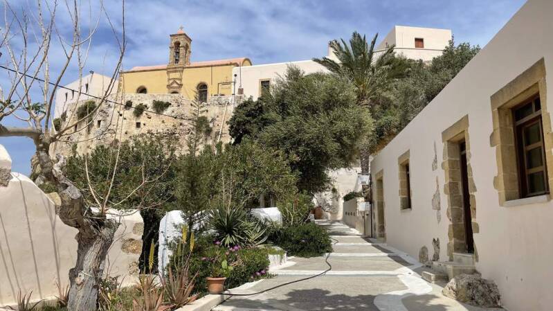 Nicht weit entfernt befindet sich das prächtige Kloster „Moni Chrysoskalitissia“, das hoch auf einem Felsen über dem Meer thront. Die Kirche selbst ist neueren Datums. Doch das über 1.000 Jahre alte Kloster steht auf Resten eines minoischen Tempels.