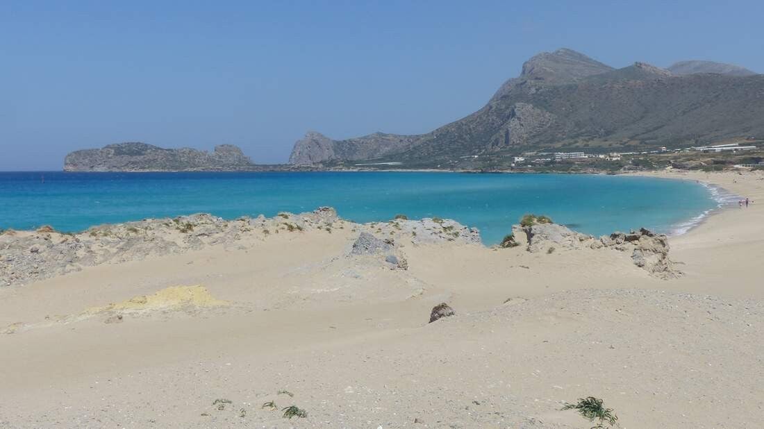 Entlang der Westküste und einem größeres Stück durch das herrlich angrenzende Küstengebirge, fahren wir hoch bis nach Falasarna. Neben ein paar wenigen Unterkünften, Kneipen und Tavernen findet man hier auch einen langen und breiten Sandstrand. Getrübt wird das Ganze allerdings durch die hohe Dichte an Gewächshäusern, die z.T. bis an den Strand der schönen Bucht reichen.
