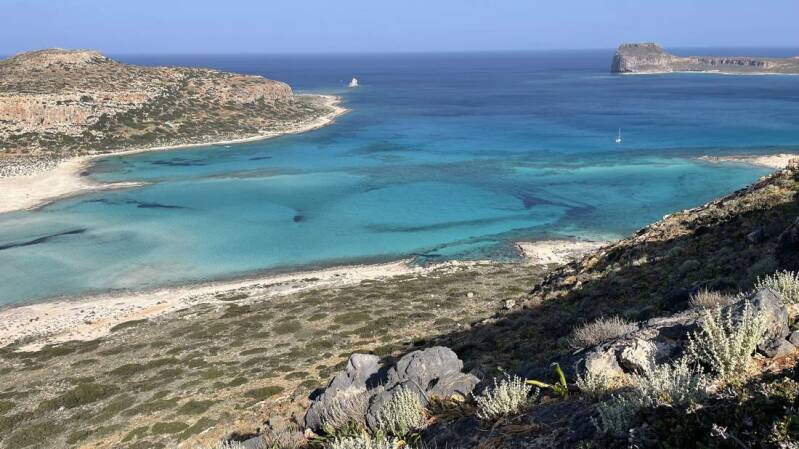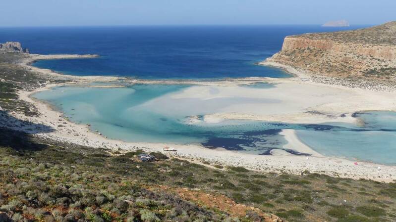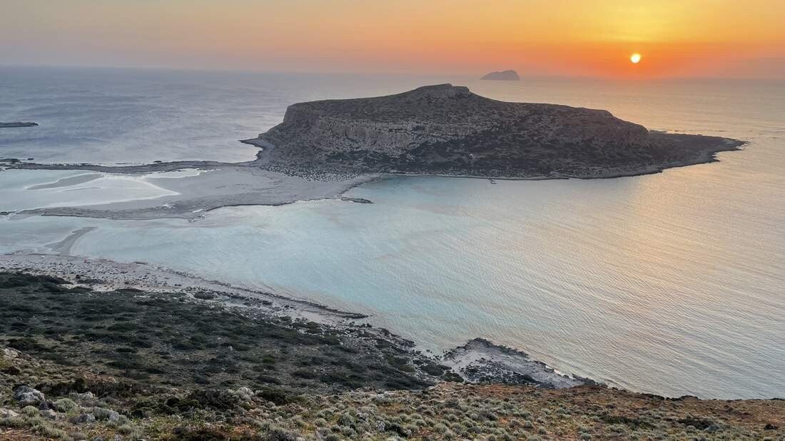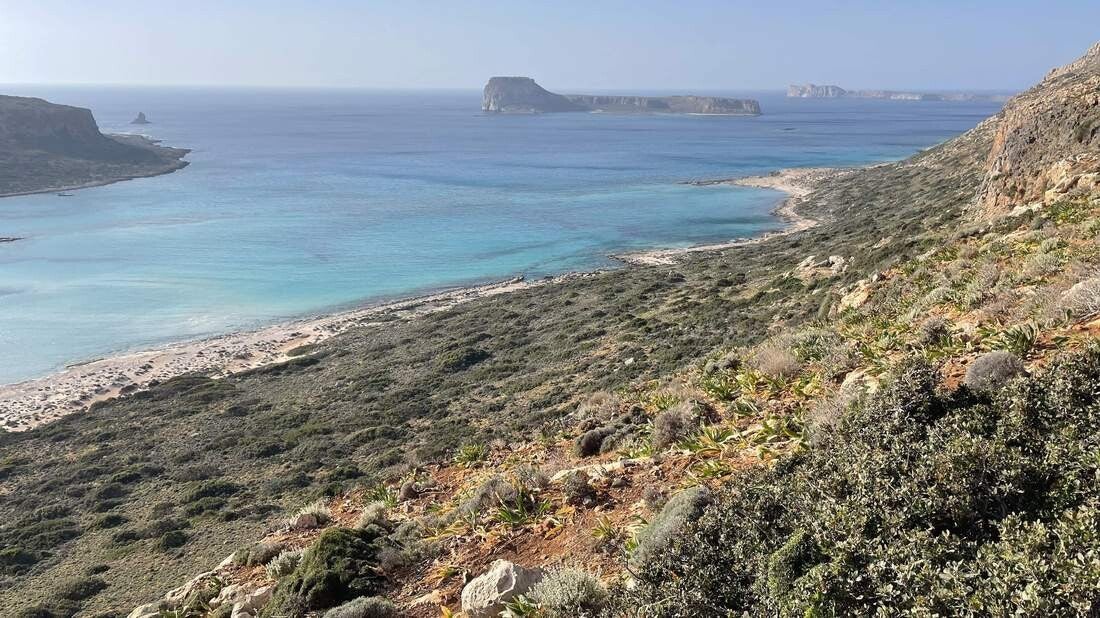 Eine davon ist zweifelsohne der Strand von Balos, auf der Halbinsel Gramvousa. Bereits die Anfahrt dorthin ist ein erneutes Sahnehäubchen. Die knapp 10km bis zum Parkplatz, des gleichnamigen Nationalparks, bringen wir auf steiniger Schotterpiste hinter uns. Jedoch sind es die Aussichten auf die Küste und die umliegende Landschaft, die diese Fahrt so grandios macht.