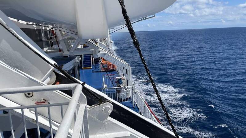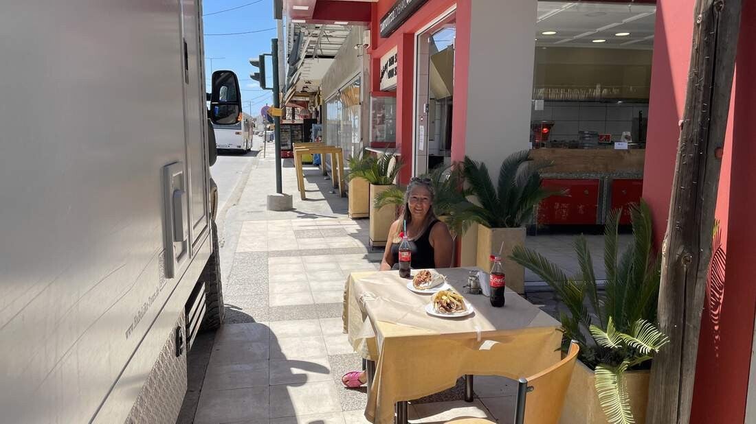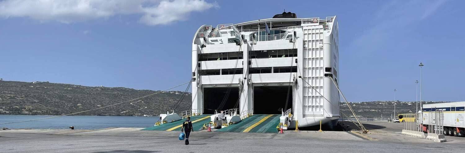 Bevor es auf die Fähre geht, genießen wir ein letztes Mal die leckere kretische Küche. Dann geht alles wie gewohnt "kretisch" entspannt vonstatten. Den Iveco auf die mächtige Fähre fahren, einparken und danach die Kabine beziehen. Pünktlich legt das Schiff ab und uns bleibt nur noch ein wehmütiger Blick zurück auf eine liebgewonnene Insel.