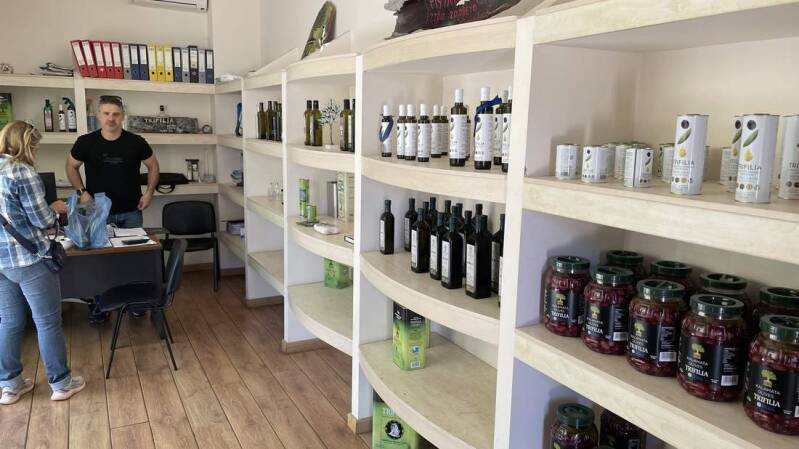 Eher zufällig kommen wir auf der Weiterfahrt an einer Ölmühle vorbei. Auf Nachfragen öffnet der Inhaber extra seinen Verkaufsraum, sodass wir uns auch noch mit frischgepresstem Olivenöl der vergangenen Ernte eindecken können.