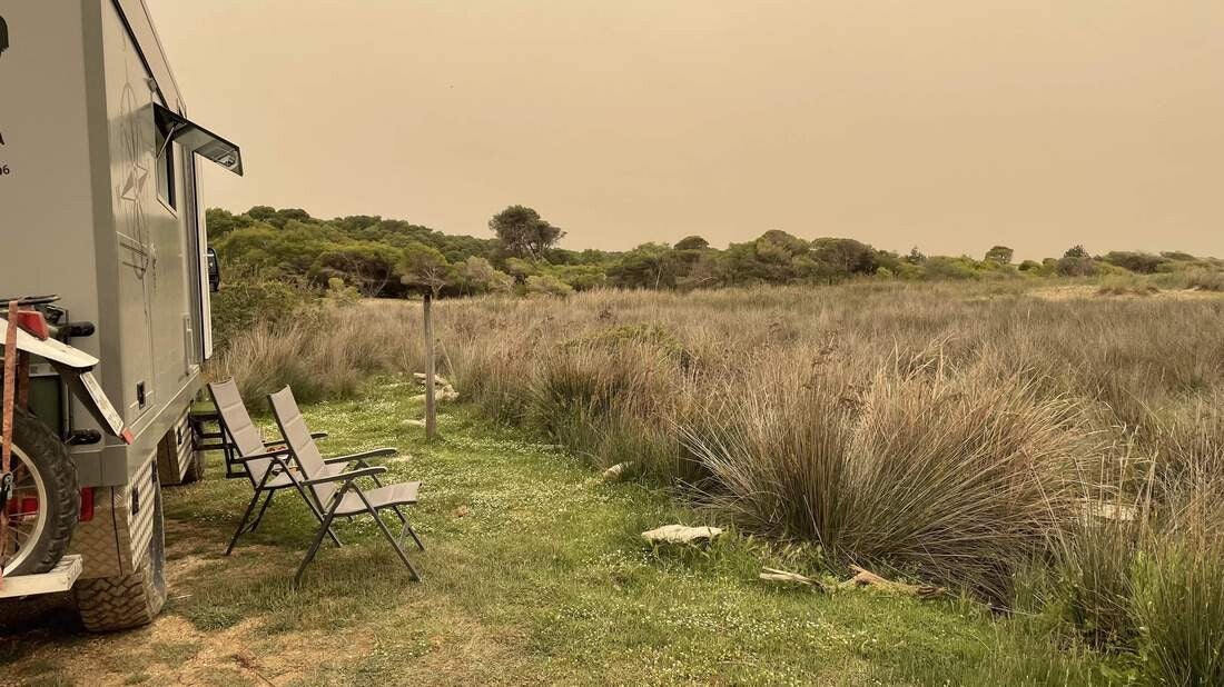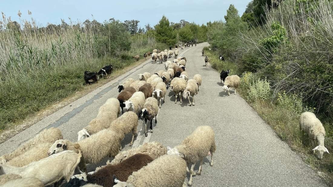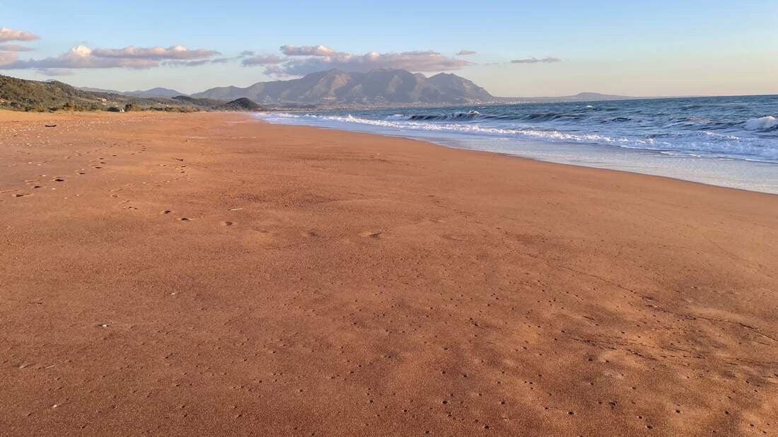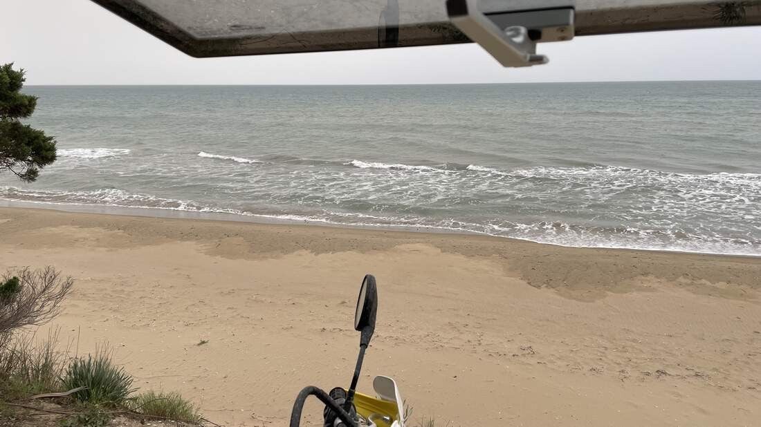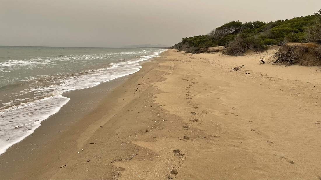 Auf unserem Weg noch Patras, legen wir im Kotychi-Strofilias NP noch einen weiteren Stopp ein. Auch von diesem Platz waren wir schon im vergangenen Jahr sehr angetan. Es ist der größte noch zusammenhängende Küstenwald Griechenlands, sowie einer der letzten am Mittelmeer. Ebenso ist er als Biosphärenreservat ausgewiesen. Leider ist an schwimmen oder in der Sonne sitzen nicht mehr zu denken. Immer wieder fängt es an zu regnen und alles wird in eine „Saharastaubdecke“ eingehüllt. Dazu verfärbt sich der Himmel in ein gespenstisch wirkendes, ockergelbes Licht – ein irres Naturschauspiel, das wir in der Intensität noch nie erlebt haben.