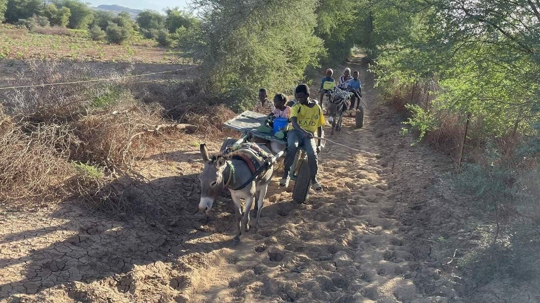 Die letzten Kilometer geht es dann noch auf holpriger Steinpiste über ein langgezogenes Felsplateau, bis es endgültig nicht mehr weitergeht. Dort angekommen, trauen wir unseren Augen nicht. Sieben Halbwüchsige haben sich vom letzten Dorf aus ebenfalls auf den Weg gemacht und sind uns hinterhergelaufen – und das waren immerhin auch ca. 6km. Wir versorgen sie mit frischem Wasser und dafür zeigen sie uns den Weg, von wo wir die Wüsten- bzw. Saharakrokodile gut beobachten können.