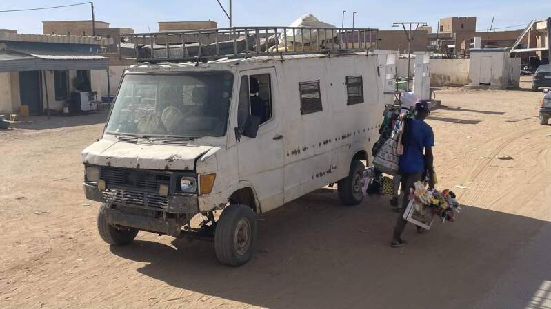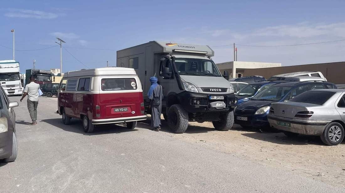 Am Ende des Diama Damm stehen wir vor der mauretanischen Grenze – zugegeben, von einer internationalen Grenze haben wir ganz andere Vorstellungen. Da wir die einzigen Touristen sind, haben wir trotz eines Formfehlers in den Einreisepapieren, die Ausreiseprozedur schnell hinter uns. Leider wurde dort der Stempel für die Mitnahme des Iveco im Pass vergessen. Doch nach zwei kurzen Telefonaten, überreicht uns der nette Zöllner mit einem lächelnden Gesicht und den Worten „Bon Voyage“ die Pässe wieder und wir können Mauretanien verlassen.
