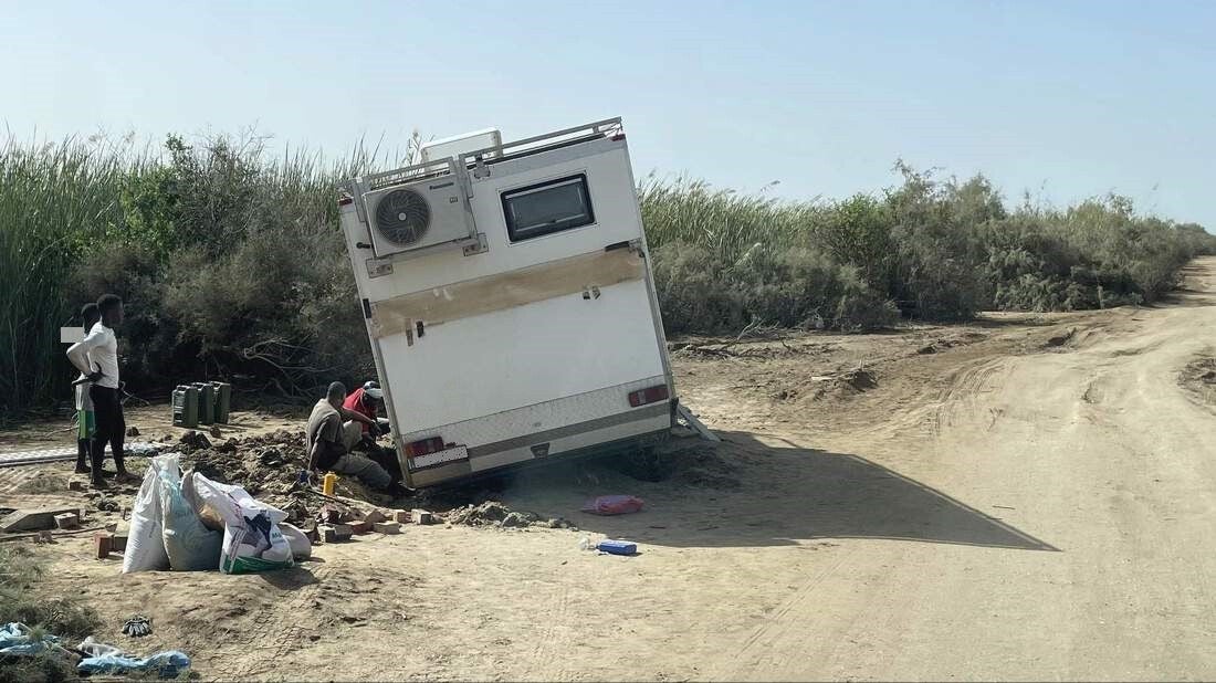 Wir erreichen den ersten Grenzübergang in den Senegal, Rosso. Dieser steht im Ruf, dass es hier oftmals nur durch „Extrazahlungen“ zu einer Abfertigung kommt oder es einen Platz auf der Fähre gibt. Also fahren wir weiter bis zum „Diama Damm“. Noch bis vor wenigen Wochen war es aufgrund der schweren Regenfälle nicht möglich, über den Damm an die senegalesische Grenze zu gelangen. Doch zwischenzeitlich ist er größtenteils abgetrocknet und wieder recht gut zu befahren. Trotzdem ist Vorsicht geboten. Die kleinste Unachtsamkeit oder ein Fahrfehler können verheerende Folgen haben – benötigte Hilfe kann u.U. Tage dauern.