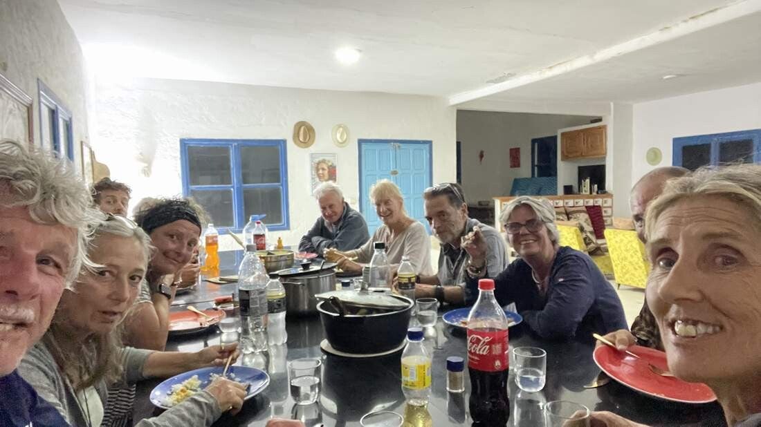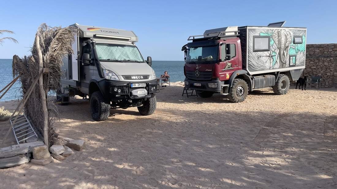Unser erster Anlaufpunkt in Mauretanien ist die „Villa Maguela“. Es ist „der“ Hotspot für alle Wüsten- und Afrikareisenden, an dem die aktuellsten Infos untereinander ausgetauscht werden. Hier können wir uns akklimatisieren, entspannen und die Fortsetzung der Reise in aller Ruhe planen. Verwöhnt werden wir am Abend mit der leckeren Küche von Trish – vielen Dank dafür.