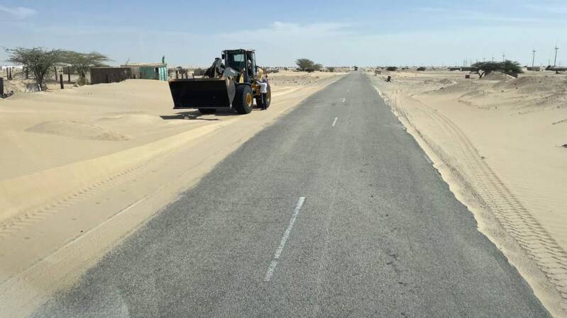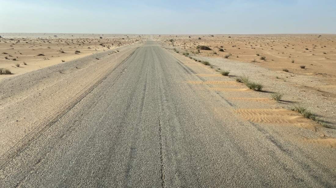 Völlig entspannt und mit viel Vorfreude fahren wir weiter. Zunächst geht es ein größeres Stück der „Eisenerzbahn“ entlang. Trotz eines längeren Stopps haben wir dieses Mal nicht das Glück, einen dieser mächtigen Züge mit z.T. vier Dieselloks zu sehen. Für uns ist dies nicht so schlimm, da wir bereits im Frühjahr diesen Jahres die 400km entlang der Bahnstrecke durch die Wüste bis "Choum" gefahren sind. Die Erlebnisse und Eindrücke dieser fantastischen Wüstentour könnt ihr unter 2025 Mauretanien noch einmal nachlesen. Immer wieder treffen wir jetzt auch auf Bulldozer, die die Fernstraßen regelmäßig vom Sand befreien.
