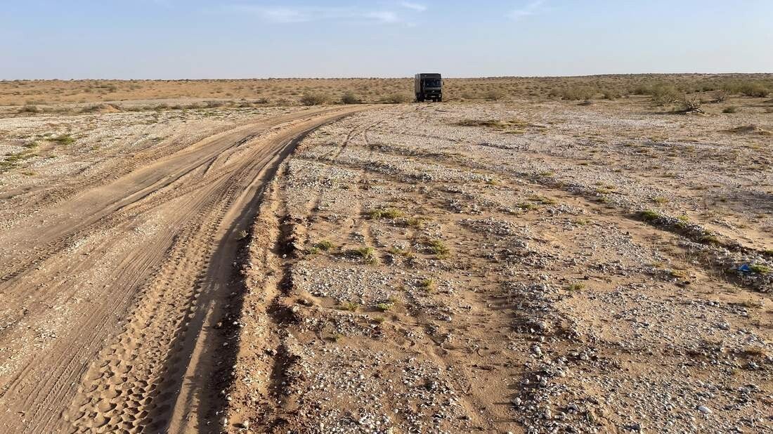 Unmittelbar nach Sonnenaufgang machen wir uns auf den Weg. Wir wollen noch die Kühle des Sandes ausnützen, da er so griffiger zu befahren ist. Zunächst wird der Reifendruck ordentlich reduziert, damit sich die Auflagefläche des Reifens vergrößert. Dann kann es endlich losgehen – zugegeben, wir sind schon etwas aufgeregt. Aber ohne Probleme zieht uns der Iveco durch Weich- und Tiefsandpassagen, sowie durch die versandeten und feuchttrockenen Flussbetten. Nicht immer kommen wir ungestreift durch, mal muss auch etwas mit modernem Gerät nachgeholfen werden. Leider stimmen mehrere Abschnitte des Tracks der "Pistenkuh" nicht mehr ganz, so dass wir auf Angaben von Einheimischen angewiesen sind oder einfach im "Freestyle" auf unser Ziel zufahren.