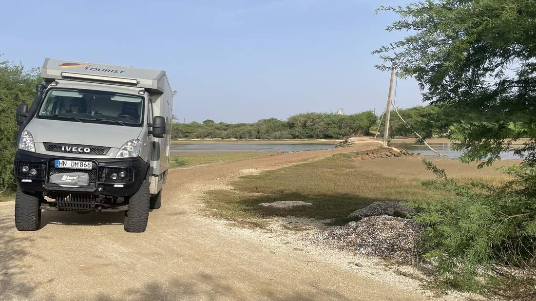 Zunächst fahren wir nach Saint-Louis hinein. Nach einem ersten Einkauf, lassen wir dem Iveco einen Vollwaschgang zukommen und befreien ihn wieder von Staub, Sand und Salz. Wir verlassen die durchaus sehenswerte Kolonialstadt wieder, die wir bereits Anfang des Jahres ausgiebig besichtigt hatten (siehe hier). Erneut steuern wir die „Zebrabar“ an, was für Afrikareisende und Overlander eine absolute Pflicht ist. Hier werden unter den Reisenden die aktuellsten Infos ausgetauscht.
