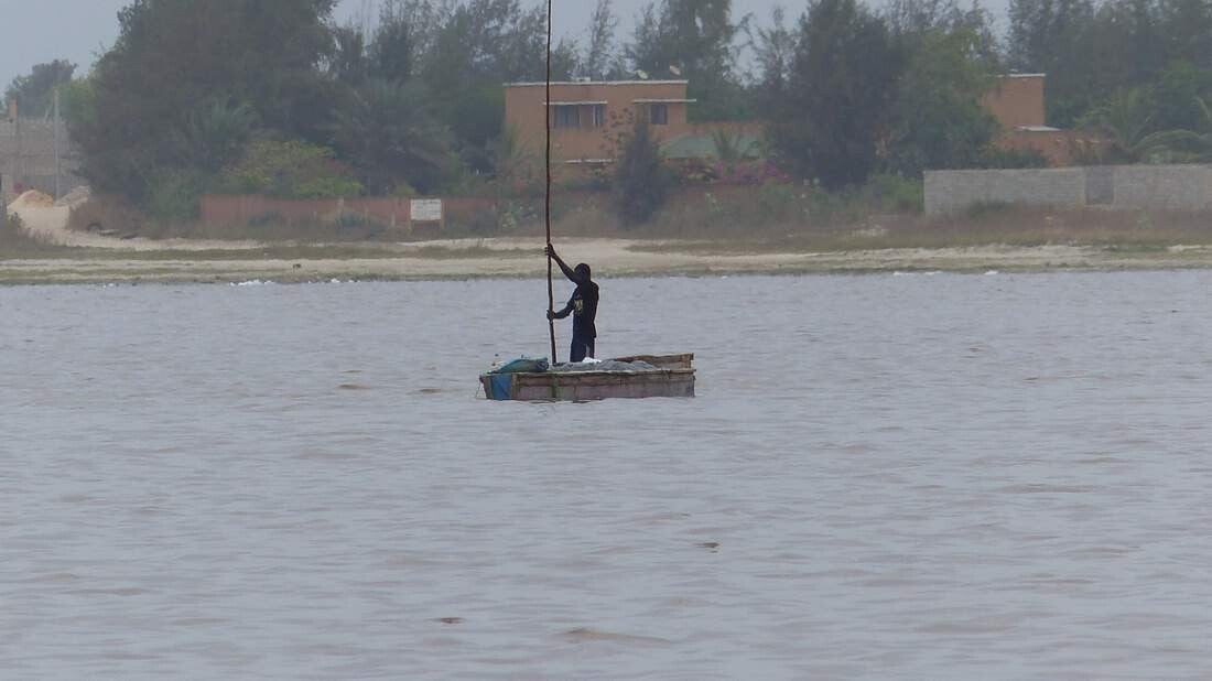 Obwohl wir Anfang des Jahres bereits schon am „Lac Rose“ waren, fahren wir jetzt nochmals dorthin – der See soll angeblich wieder rosa schimmern. Leider können wir das „rosa“ nur etwas schwach erahnen, da die Sonne sich hinter einer Wolkendecke verbirgt. Bedingt durch einen Salzgehalt von 380g auf einen Liter Wasser sowie eine ganz bestimmte Algenart, schimmert der See bei einer bestimmten Sonneneinstrahlung rosa. Während eines Spaziergangs können wir jedoch den Einheimischen, beim Abbau des Salzes vom Seegrund und wie es danach mühevoll an Land gebracht wird, zusehen.