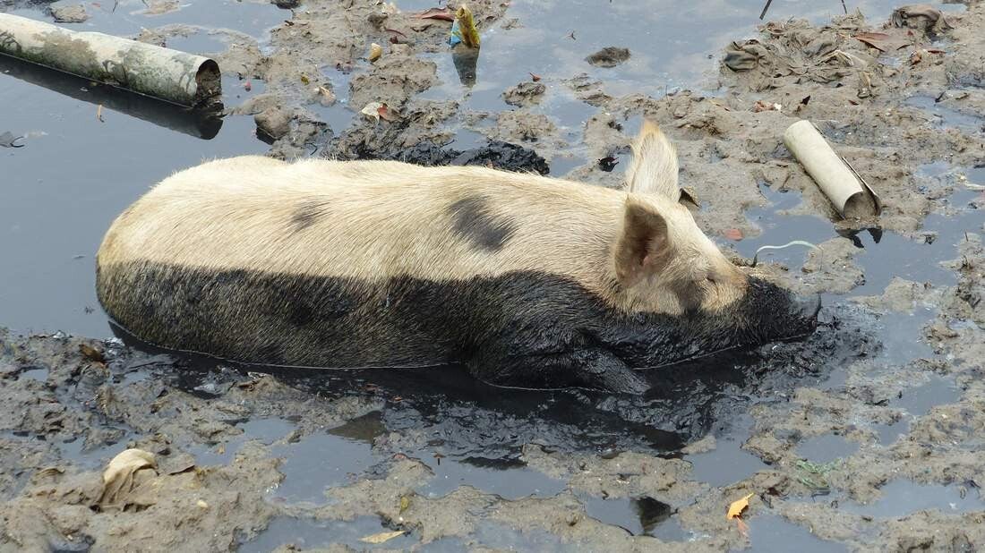Zu guter Letzt geht es über eine Holzbrücke zur Hauptinsel Fadiouth. Dort bestehen nicht nur die Wege aus Muscheln, auch in vielen Gebäuden wurde es als natürliches Baumaterial verwendet. Moscheen und christliche Gotteshäuser stehen hier dicht beieinander. So verwundert es auch keinen, dass überall Schweine herumlaufen und Schweinefleischgerichte angeboten werden.