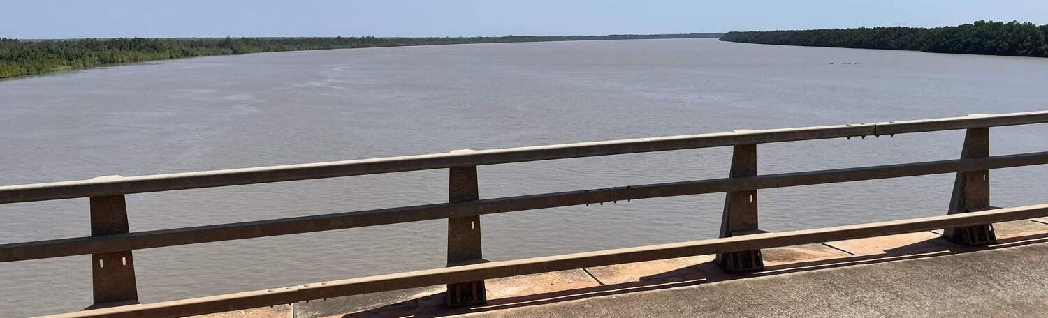 Tags darauf machen wir uns auf den Weg an die gambische Grenze. Es ist kaum was los und Dank unseres „Carnet de Passage“ haben wir erneut die Aus- bzw. Einreiseprozedur recht schnell hinter uns gebracht. Zunächst geht es über eine mautpflichtige Brücke über den an dieser Stelle bereits mächtigen „Gambia River“. Noch im Frühjahr machten wir am Oberlauf des Flusses, mit Dorothea und Volker zusammen, eine fantastische Bootstour mit Affen- und Krokodilsichtungen sowie vielerlei Vogelarten (siehe hier).