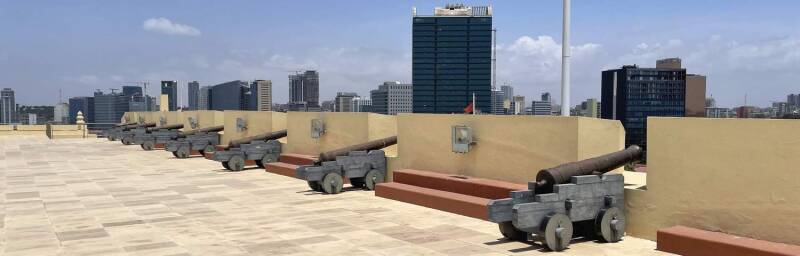 Wir sind sehr erstaunt darüber, wie sauber und modern die Innenstadt von Luanda ist – das hätten wir so nicht erwartet. Uns überrascht aber auch, dass Luanda neben Tokio und Oslo die teuerste Stadt der Welt ist, was die Wohnungsmieten angeht. Direkt an der großen Bucht thront die alte portugiesische Festung „Fortaleza de Sao Miguel“, die im Jahre 1576 erbaut wurde. Heute ist das Fort komplett restauriert und beinhaltet ausschließlich ein Militärmuseum. Neben Ausstellungsstücken aus kolonialer Zeit, widmet sich das Museum auch dem 27 Jahre andauernden und grausamen Bürgerkrieg im Lande (1975-2002).