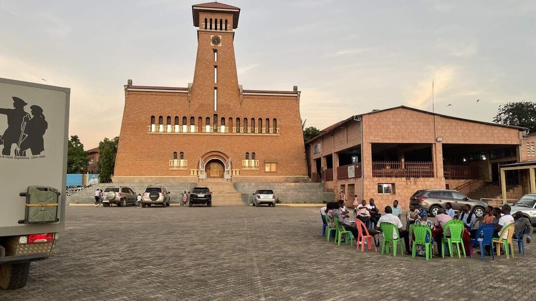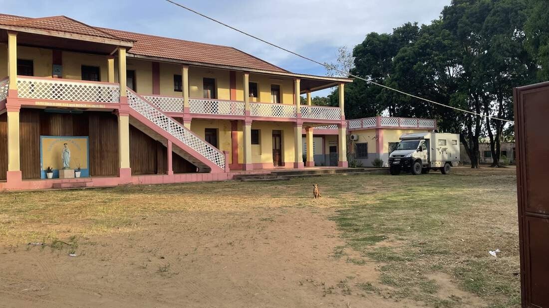 Da wir an einem Samstag in Cabinda einreisen, müssen wir dort zunächst zwei Nächte verbringen. Der Grund dafür ist, dass am Sonntag der Grenzübergang in die DR Kongo geschlossen bleibt. Auf dem weitläufigen Gelände der „Katholischen Mission Cabinda“ sind Overlander immer herzlich willkommen und so dürfen auch wir bis Montag stehen bleiben. Die Mission wurde 1984 von Pabst Johannes Paul II. gegründet, und daher wurde ihm zu Ehren eine große Bronze-Statue vor den Gebäuden errichtet. Da sich die Mission unmittelbar an der Küste befindet, erhält man vom Balkon des Hauptgebäudes aus einen herrlichen Ausblick auf das Meer.