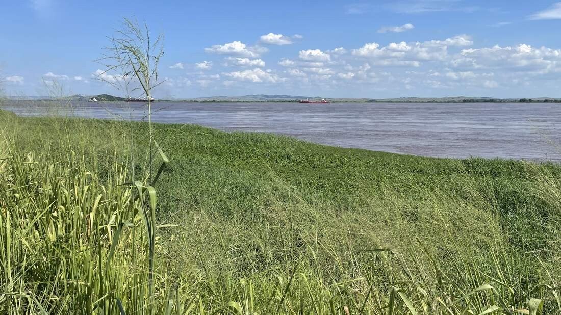 Kurz vor Bamo stoßen wir erneut auf den mit knapp 4.400 km langen und zweitlängsten Fluss Afrikas. Hier lassen sich viele Schiffe beobachten, die vom und zum Atlantik unterwegs sind. Zumeist sind es Tankschiffe, die das Rohöl zu den zahlreichen Raffinerien bringen oder den fertigen Treibstoff von dort holen. Hier haben wir auch die einzige Übernachtung im Land. Mit Blick über den Ort und dem dahinterliegenden Strom, lässt man uns auf dem Parkplatz der dortigen Kathedrale für die anstehende Nacht bleiben.