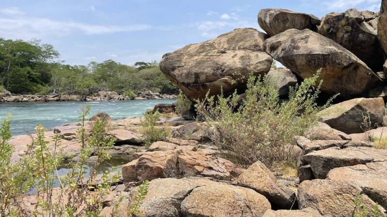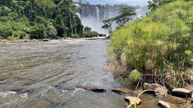 Auf der Weiterfahrt kommen wir an den Stromschnellen des größten Flusses des Landes vorbei, dem „Cuanca“. Ein schöner Platz direkt am Ufer bietet sich ideal für eine ausgiebige Mittagspause an.