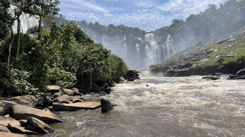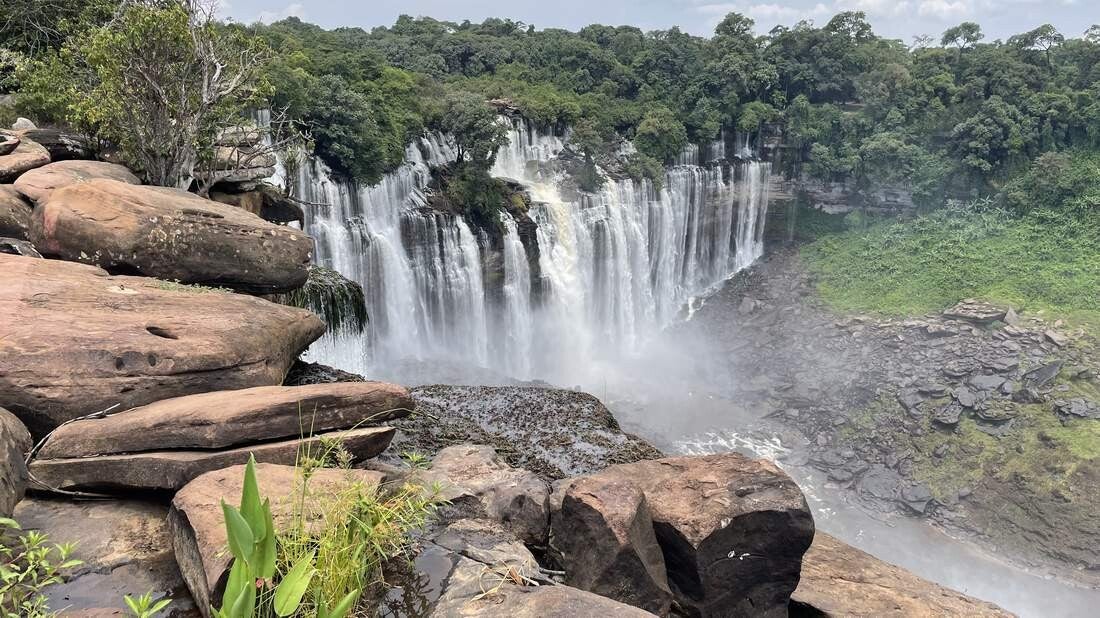 Wir machen uns auf den Weg zu den „Calandula Falls“. Sie sind nach den Victoria Fällen im Grenzgebiet von Sambia und Simbabwe, die zweitgrößten Wasserfälle in Afrika. Die Anfahrt von Luanda kommend zieht sich doch sehr lange hin, da die knapp 400km nicht immer einfach zu fahren sind. Mit einem Panorama Blick auf die herabstürzenden Wassermassen, finden wir für die nächsten Tage an der „Pousada Lodge“ den idealen Stellplatz. Noch am späten Nachmittag verschaffen wir uns mit einer kleinen Wanderung einen ersten Überblick über die gewaltigen Fälle.