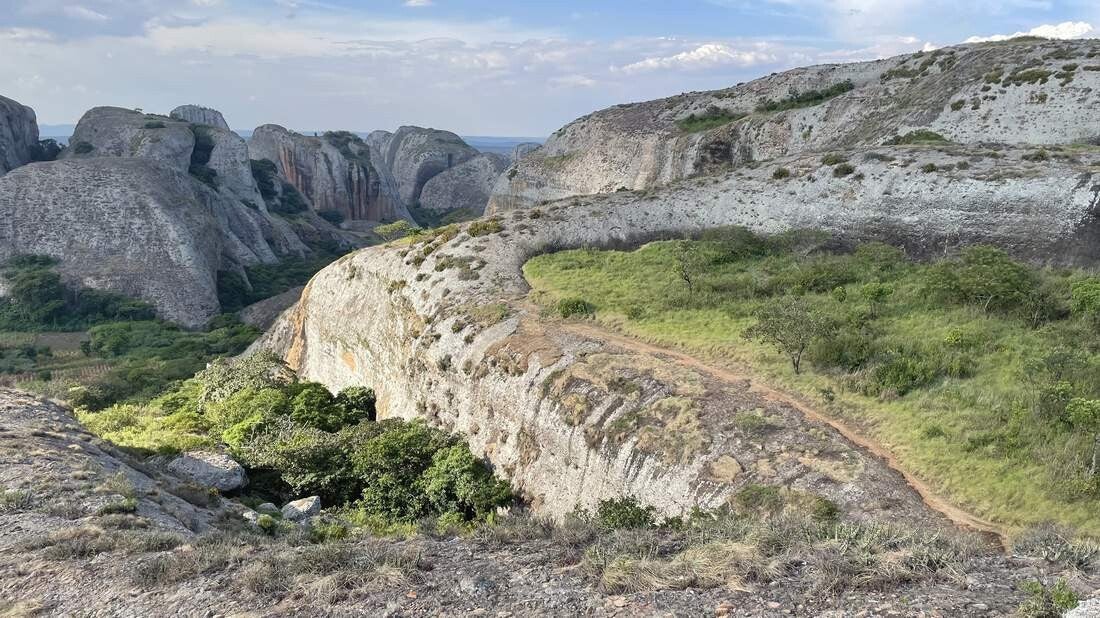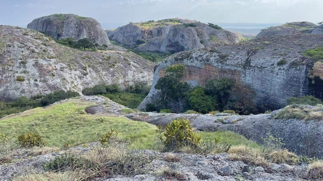 Schon von Weitem erkennen wir die Felsenlandschaft von „Pedras Negras“, den Schwarzen Felsen. Wir fahren in den Nationalpark hinein und wandern zu einem der Aussichtspunkte, der sich auf einem der Felsen befindet. Von dort finden wir auch die Felsformation, die sich auf dem 200 Kwanza Geldschein befindet. Am Abend suchen wir uns noch ein abgeschiedenes Plätzchen zwischen den riesigen Sandsteinfelsen, wo wir die Nacht verbringen.