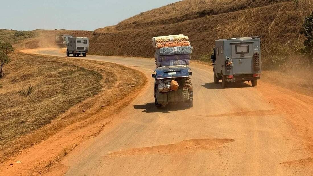 Unmittelbar hinter der nigerianíschen Grenze treffen wir uns mit drei weiteren Fahrzeugen. Über eine WhatsApp Gruppe haben wir uns kennengelernt und unsere Reisedaten ähneln sich so, dass wir Nigeria gemeinsam durchfahren wollen. Auch sie sind daran interessiert, die Grenze von Nigeria nach Kamerun über die östlichen Berge, auf der s.g. „Mayo-Banyo Route“, zu passieren. Dabei geht es auf fast 250km nur über Piste, die teilweise sehr extrem zu befahren ist. Daher ist es ratsam, dies nicht alleine zu tun – doch dazu später mehr.