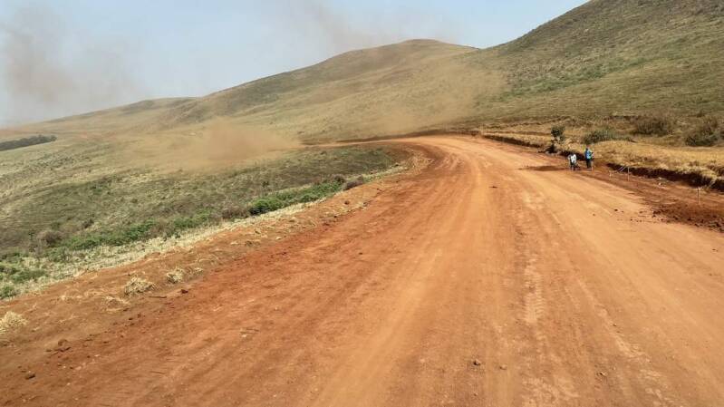Wir haben Gurojie auf knapp 1.800 Höhenmeter erreicht und steigen ab hier in die "Mayo-Banyo Route" ein – jetzt wird es ernst. Während wir auf den ersten Kilometern noch ganz gut auf der roten Staubpiste vorankommen, wird es danach umso heftiger und erfordert von den Fahrern die ganze Konzentration. Ab jetzt fahren wir zumeist nur noch zwischen dem 1. und 2. Gang, in Untersetzung und eingelegter Sperre. Tagesetappen von nur 25 oder 45 Kilometern sind an diesen Tagen keine Seltenheit.