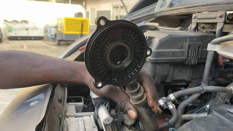 Am nächsten Morgen kämpfen wir uns durch die Stadt, um unseren Termin in der Iveco Werkstatt wahrzunehmen. Seit geraumer Zeit sind immer größer werdende Ölflecken unter dem Motor zu sehen. Erneut spielen sich die schlimmsten Szenarien in unseren Köpfen ab. Ein Mechaniker nimmt sich unserem Problem an und wird auch recht schnell fündig. Lediglich der O-Ring an der Entlüftung des Kurbelgehäuses ist verschlissen. Im Nu ist der O-Ring gewechselt und der Motor wieder dicht – uns fällt ein Stein vom Herzen.