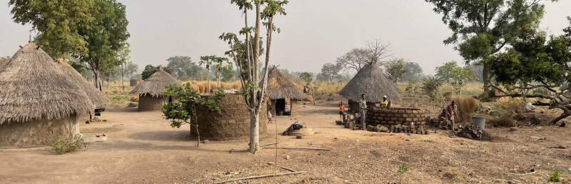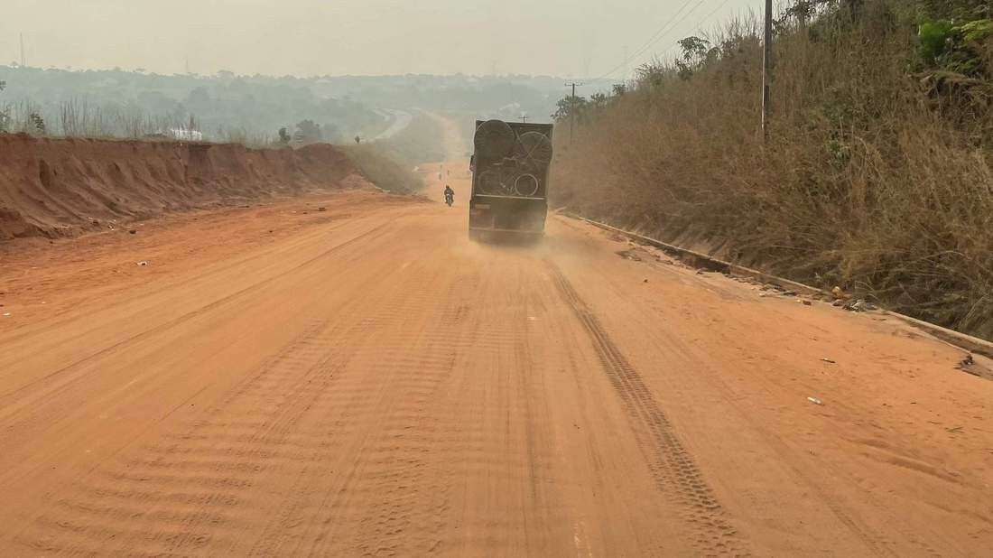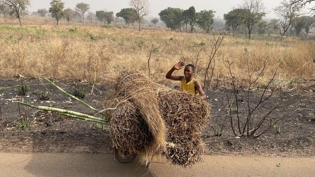 Ab Serti wird es langsam aber sicher immer ländlicher und wir nähern uns den Gebirgsregionen. Die festen Gebäude außerhalb der Ortschaften weichen jetzt immer mehr den traditionellen Hütten. Auf dem Land leben die Menschen hauptsächlich von Tierhaltung und von dem was sie rund um ihre Behausungen anbauen. So sehen wir viele Maniokfelder, die sehr gut an der hügeligen Form zu erkennen sind. Nach dem Abernten werden die Felder durch das Abbrennen der alten Blätter für eine neue Ernte vorbereitet. Ebenso sehen wir auch viele Einheimische mit geschnittenen Grasbüscheln, die sie für ihre traditionelle Dachbedeckung verwenden.